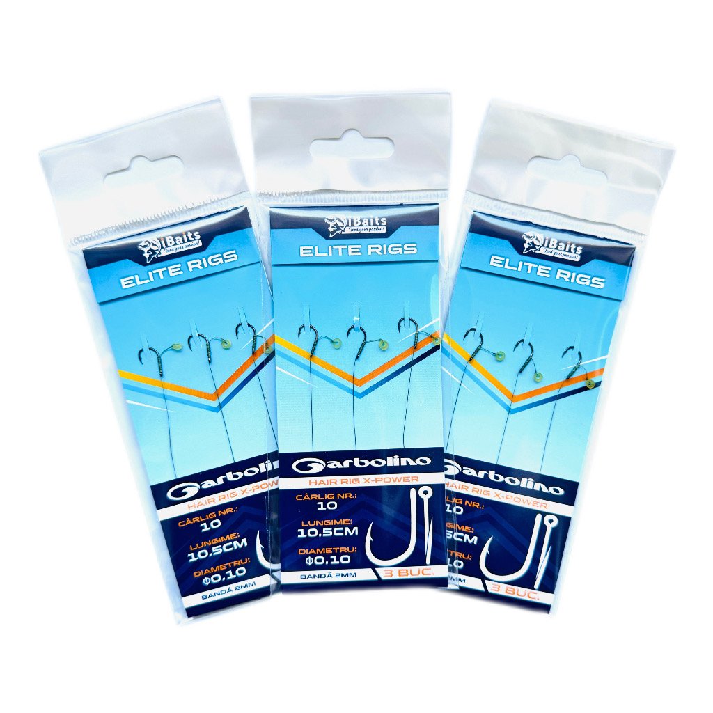 La baza acestor riguri se află cârligele Garbolino Hair Rig X‑Power, unele dintre cele mai apreciate cârlige de method feeder din România. Aceste cârlige sunt renumite pentru înțeparea rapidă, rezistența excelentă și fiabilitatea lor în drill, fiind preferate de pescarii care urmăresc rezultate constante.