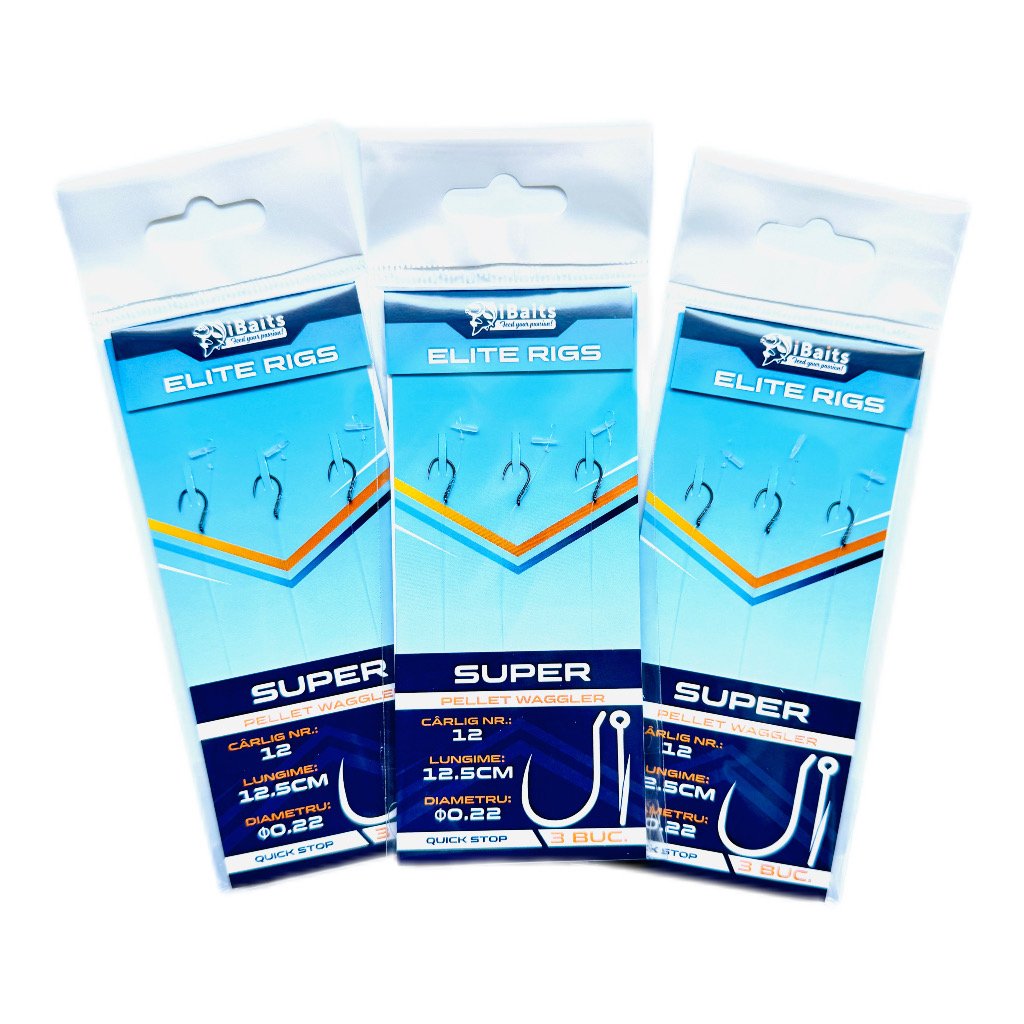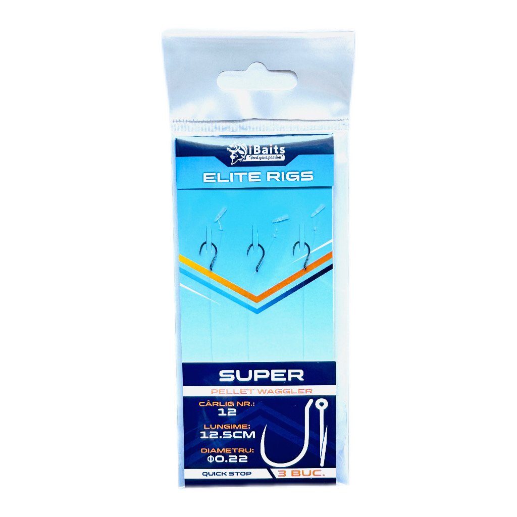 iBaits Elite Rigs Super No.12 cu Quick Stop pe fir monofilament cu diametrul de 0,22 mm si lungimea de 12,5 cm sunt monturi premium concepute pentru pescarii de method feeder care caută eficiență maximă, prezentare impecabilă și materiale de cea mai bună calitate. Fiecare montură este realizată manual, cu precizie și atenție la detalii, pentru a oferi performanță constantă în orice condiții de pescuit.
