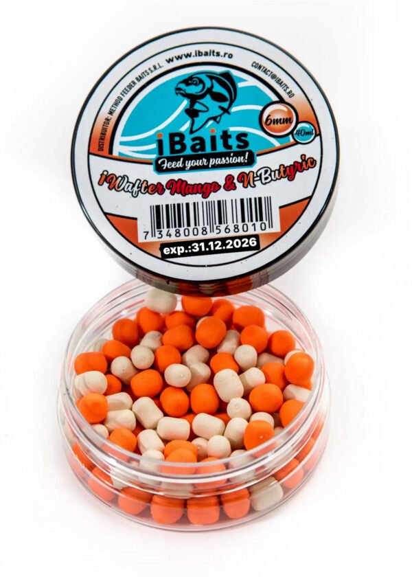 Noile momeli iBaits iWafter de 4 mm sunt momeli de tip wafter, critic echilibrate, în formă de dumbell (butoiaș), ce au diametrul de 4mm, doua culori in aceeasi cutie, capete rotunjite care ajută momeala de cârlig să poată fi atașată extrem de ușor pe firul de păr, pe banda siliconică, pe quick stops sau pe spinul de momeală.