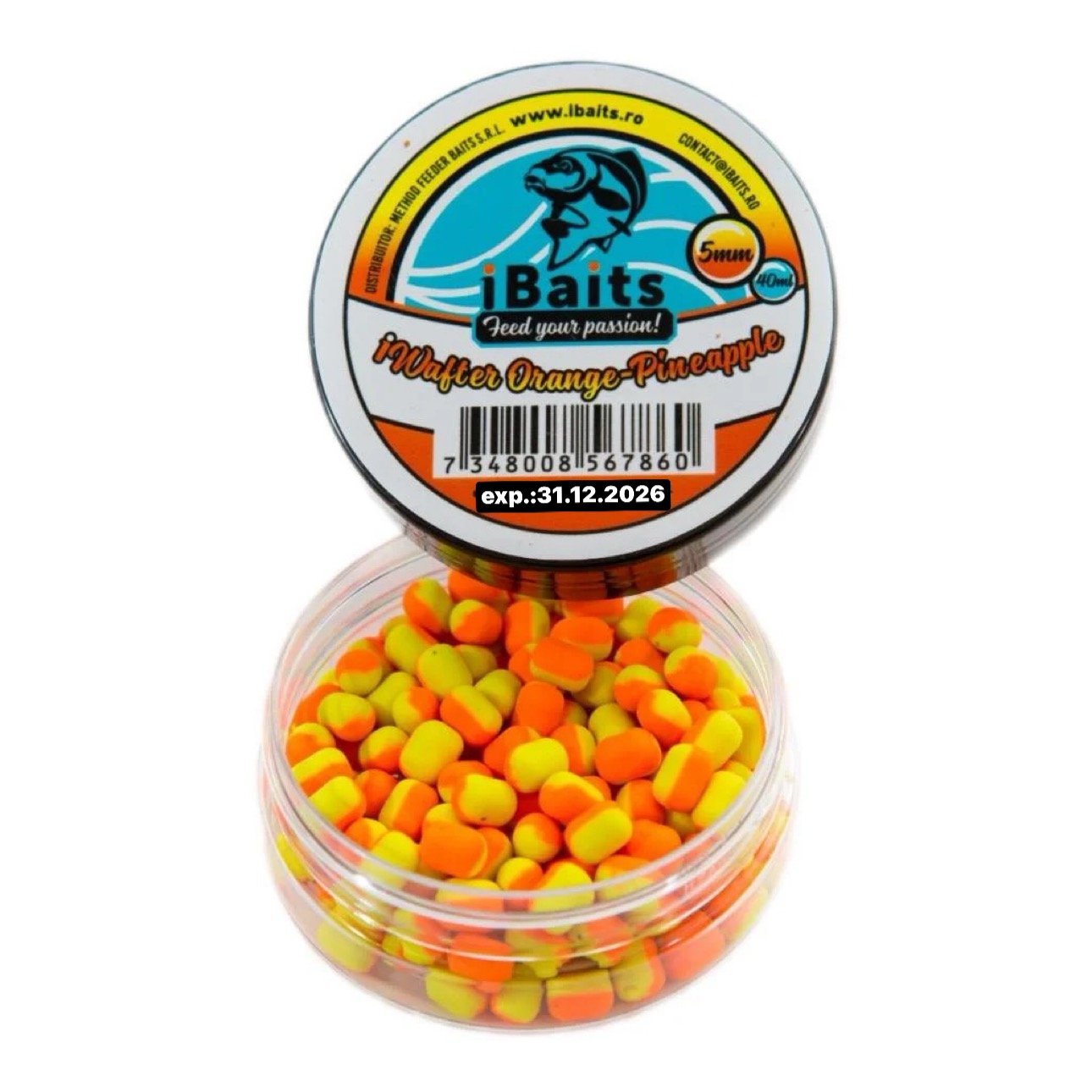 iBaits iWafter sunt momeli de tip wafters, critic echilibrate, în formă de dumbell (butoiaș), ce au diametrul de 5mm si lungimea de 7mm, cu capetele rotunjite care ajută momeala de cârlig să poată fi atașată extrem de ușor pe firul de păr, pe banda siliconică, pe quick stops sau pe spinul de momeală. Mixul din care sunt făcute momelile iBaits este de cea mai bună calitate, colorantul, aromele și toate celelalte ingrediente fiind unele de top.